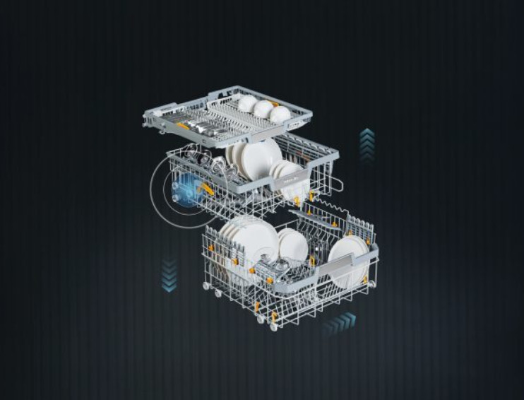 Máy rửa chén Miele G 7000 còn được trang bị giá đỡ FlexLine, mang lại sự linh hoạt tối đa. Ngăn kéo có thể dễ dàng điều chỉnh độ cao, chiều sâu và chiều rộng, phù hợp với mọi loại dụng cụ như kính cao, cốc nhỏ, thớt hay chảo lớn. Sự linh động này đảm bảo trải nghiệm rửa chén trở nên thoải mái và thuận tiện hơn bao giờ hết.