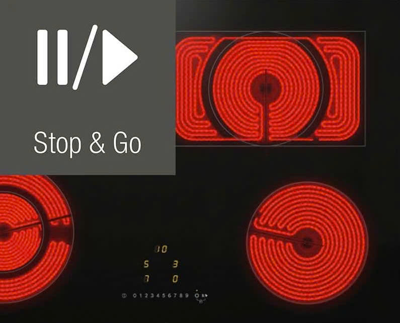 Chức năng Stop&Go trong bếp cho phép bạn tạm dừng hoạt động của thiết bị trong thời gian ngắn trong khi vẫn duy trì tất cả các cài đặt trước đó. Ở hầu hết các kiểu máy, quá trình sưởi ấm không dừng hoàn toàn mà được duy trì ở mức tối thiểu để hương vị của thức ăn không bị ảnh hưởng. Bạn có thể sử dụng chức năng này nếu cần đi xa hoặc làm sạch nhanh bề mặt chất lỏng bị đổ. Để kích hoạt chức năng, có một nút đặc biệt, khi bạn nhấn nó, tất cả các đầu đốt sẽ tắt cùng một lúc. Để tiếp tục hoạt động, chỉ cần nhấn lại nút này hoặc nút nguồn của thiết bị.