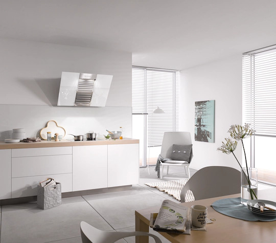 Máy hút mùi treo tường Miele DA 6096 W White Wing có đèn LED tiêu thụ điện năng thấp và các phím để vận hành thoải mái hơn.