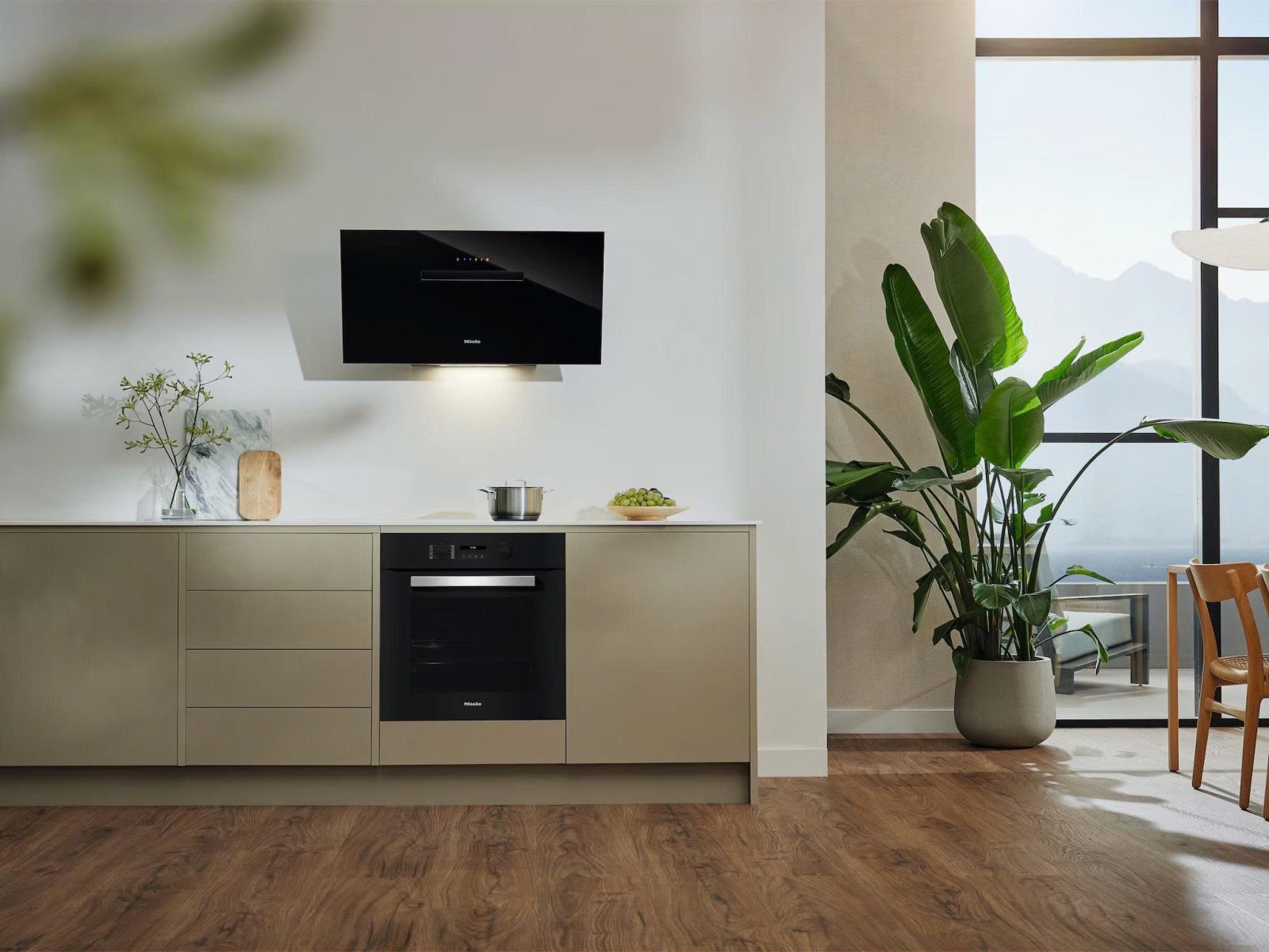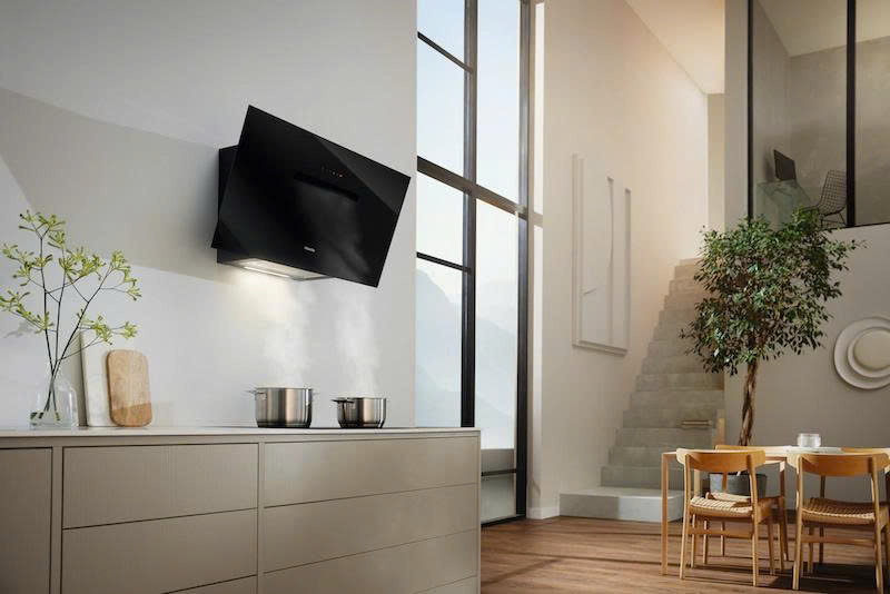 Miele DAH 1950 Active được thiết kế theo phong cách vát tường, mang đến cảm giác nhẹ nhàng, gọn gàng nhưng vẫn đầy mạnh mẽ. Bề mặt phủ màu đen Obsidian – một sắc đen đậm cá tính, sang trọng và đẳng cấp – giúp sản phẩm dễ dàng hòa hợp với không gian bếp cao cấp và hiện đại.