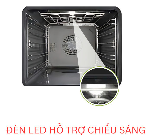 Đèn LED hỗ trợ chiếu sáng trong lò nướng Miele là một trong những tính năng hiện đại giúp nâng cao trải nghiệm nấu nướng. Hệ thống đèn được bố trí thông minh trong khoang lò, mang lại ánh sáng rõ ràng và đồng đều, cho phép người dùng dễ dàng quan sát món ăn trong suốt quá trình nướng mà không cần mở cửa lò. Nhờ sử dụng công nghệ LED tiết kiệm năng lượng và có tuổi thọ cao, đèn chiếu sáng không chỉ góp phần tăng tính tiện lợi mà còn đảm bảo độ bền và hiệu quả lâu dài.